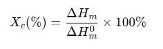 上海剂拓材料科技提供差示扫描量热(DSC)测试结晶度测试服务 机理:聚合物链由无序向有序排列,放出结晶热。 曲线特征:冷却时出现放热峰(Tc)。 应用价值: • 评估工艺对结晶速率和结晶温度的影响 • 结晶度(Xc)可通过熔融热计算: ΔHm⁰ 为 100% 理想结晶度下的参考值(如 PE 为 293 J/g)。